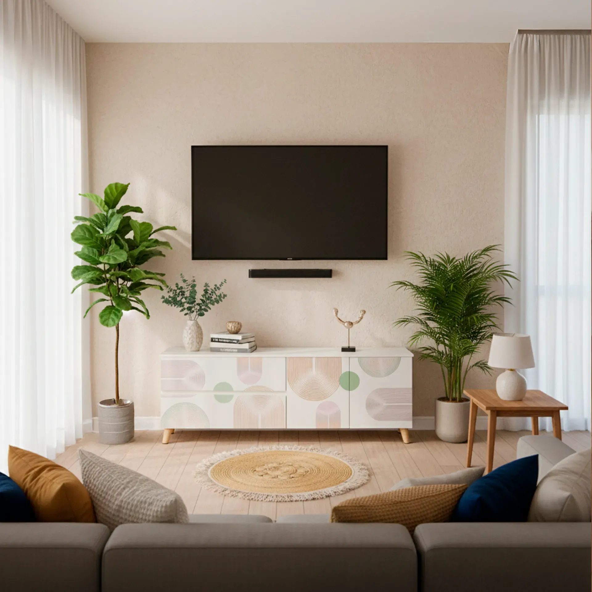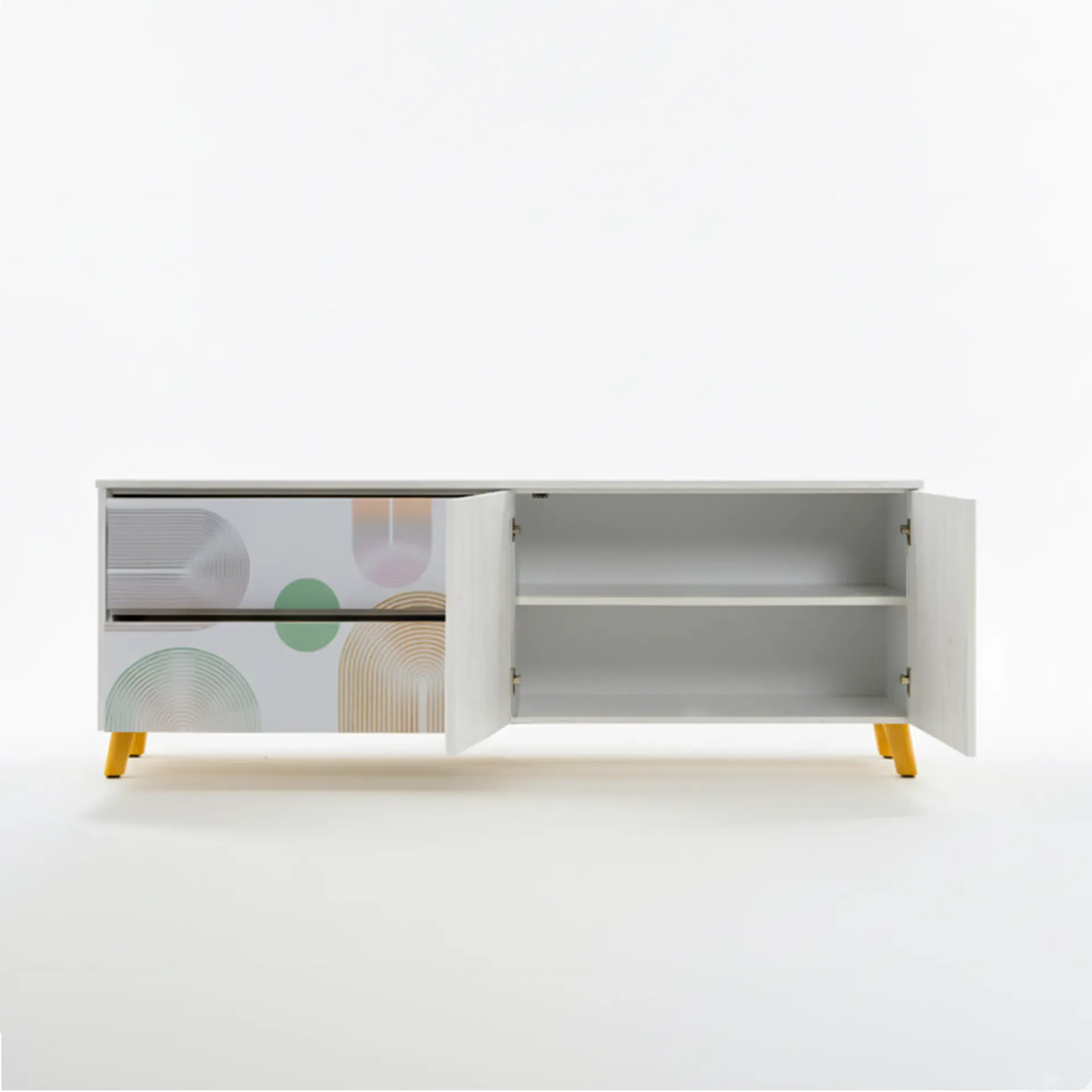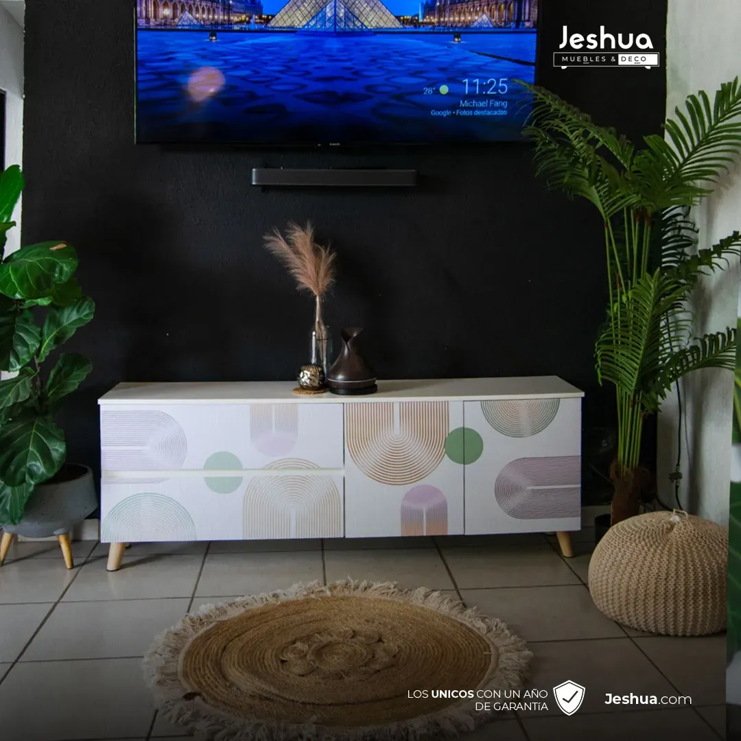 "El centro de entretenimiento ECBERT está diseñado para transformar tu sala en un espacio moderno y organizado. Con líneas limpias y compartimentos funcionales, es perfecto para acomodar todos tus dispositivos con estilo y calidez. ¡Lleva tu entretenimiento al siguiente nivel!