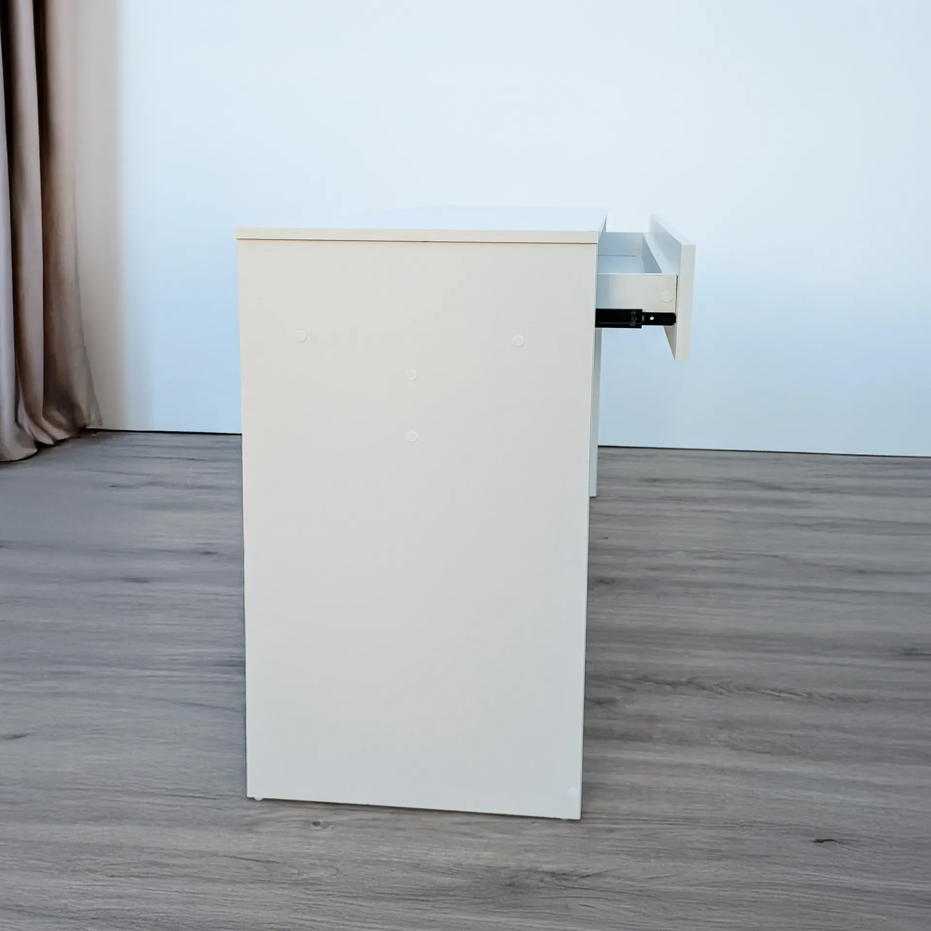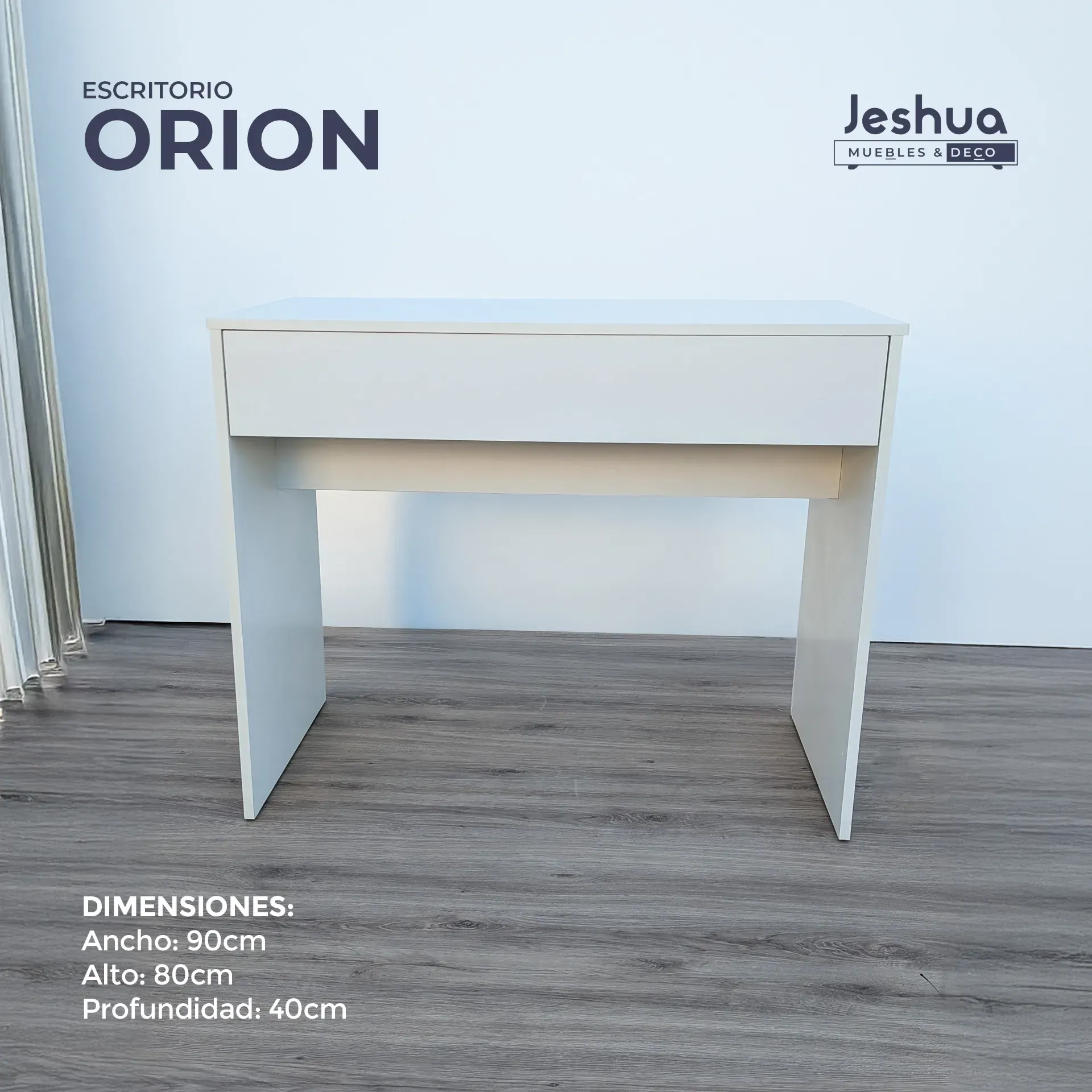 El escritorio de una gaveta Orion, confeccionado con melamina chilena de 15mm de alta calidad, se presenta como una pieza de mobiliario elegante y funcional para cualquier espacio de trabajo.