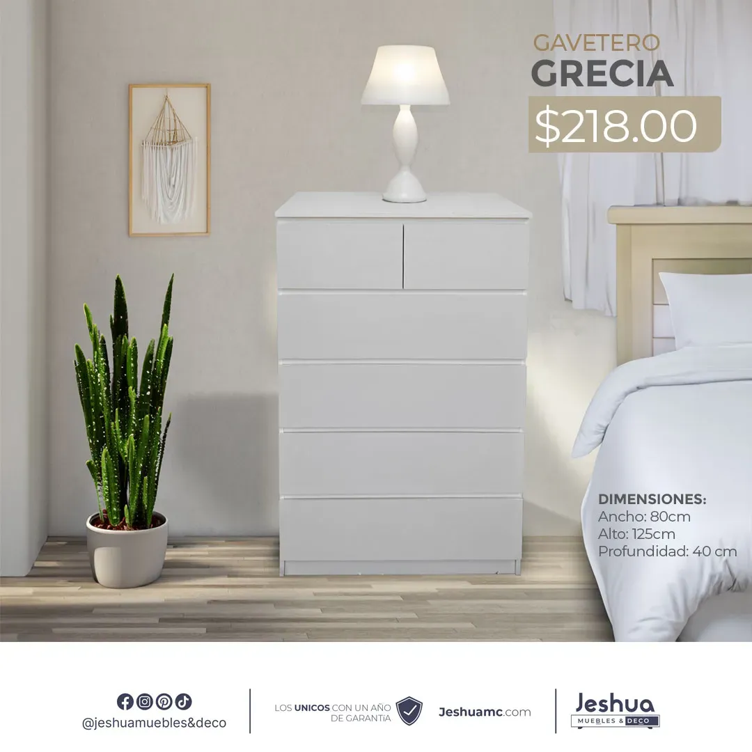 El gavetero de 6 Grecia combina la esencia clásica con la funcionalidad moderna. Elaborado con Melamina Chilena de 15mm de alta calidad, presenta seis cajones organizados. Su diseño elegante y durabilidad hacen de este gavetero una elección atemporal para tu espacio.