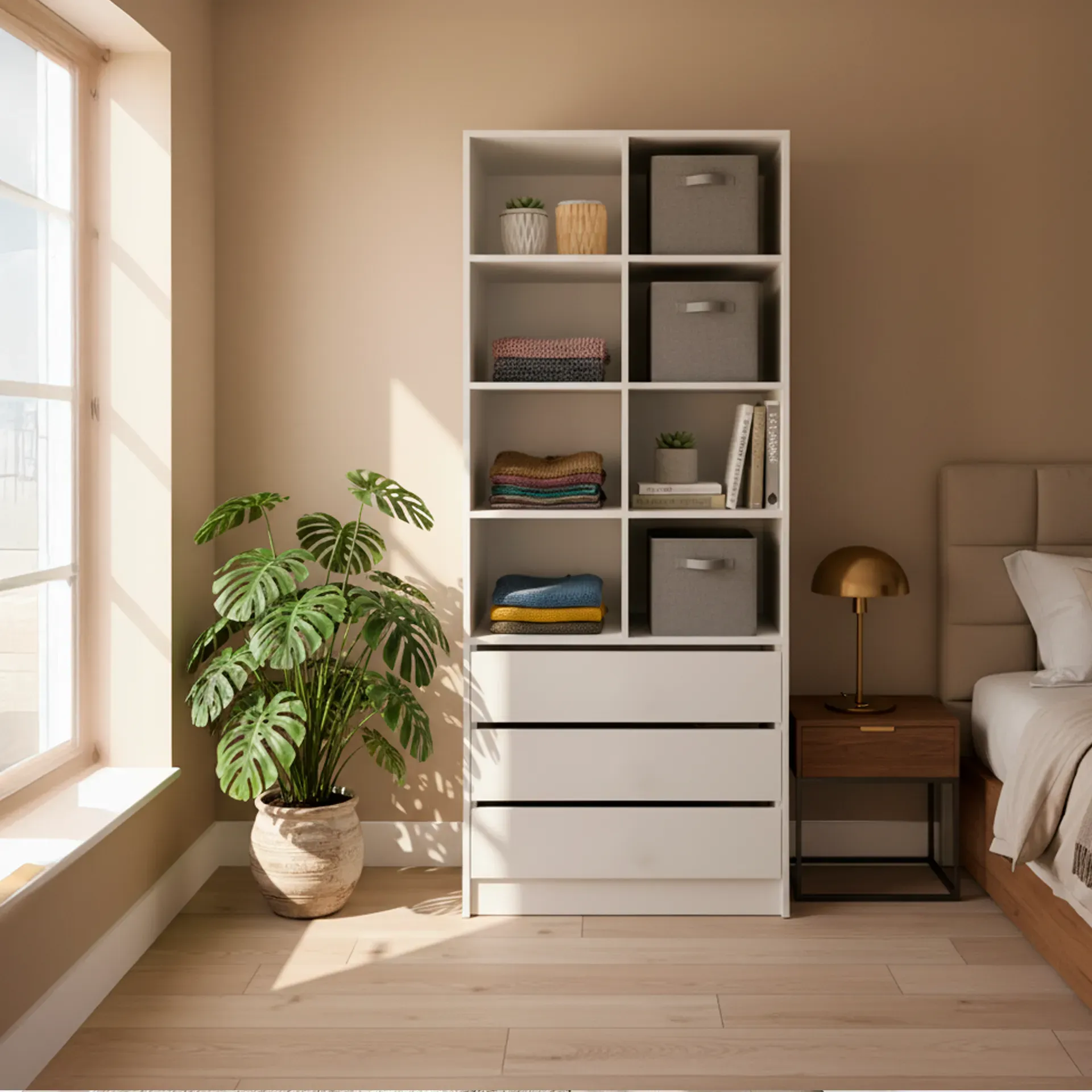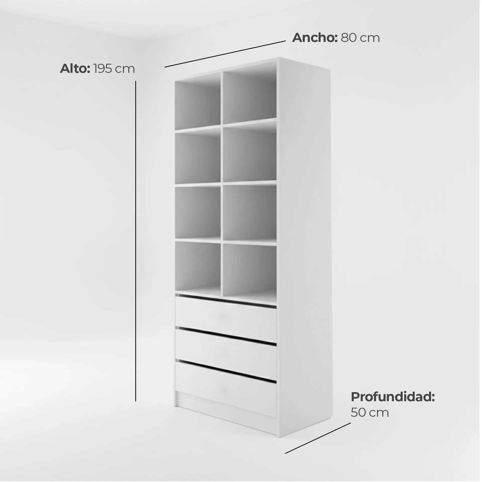 ¡Transforma tu dormitorio en un oasis de tranquilidad con este hermoso mueble! Con un amplio espacio para organizar tu ropa con sus 8 compartimientos y 3 gavetas amplias, este clóset es perfecto para mantener tu habitación ordenada y con estilo.