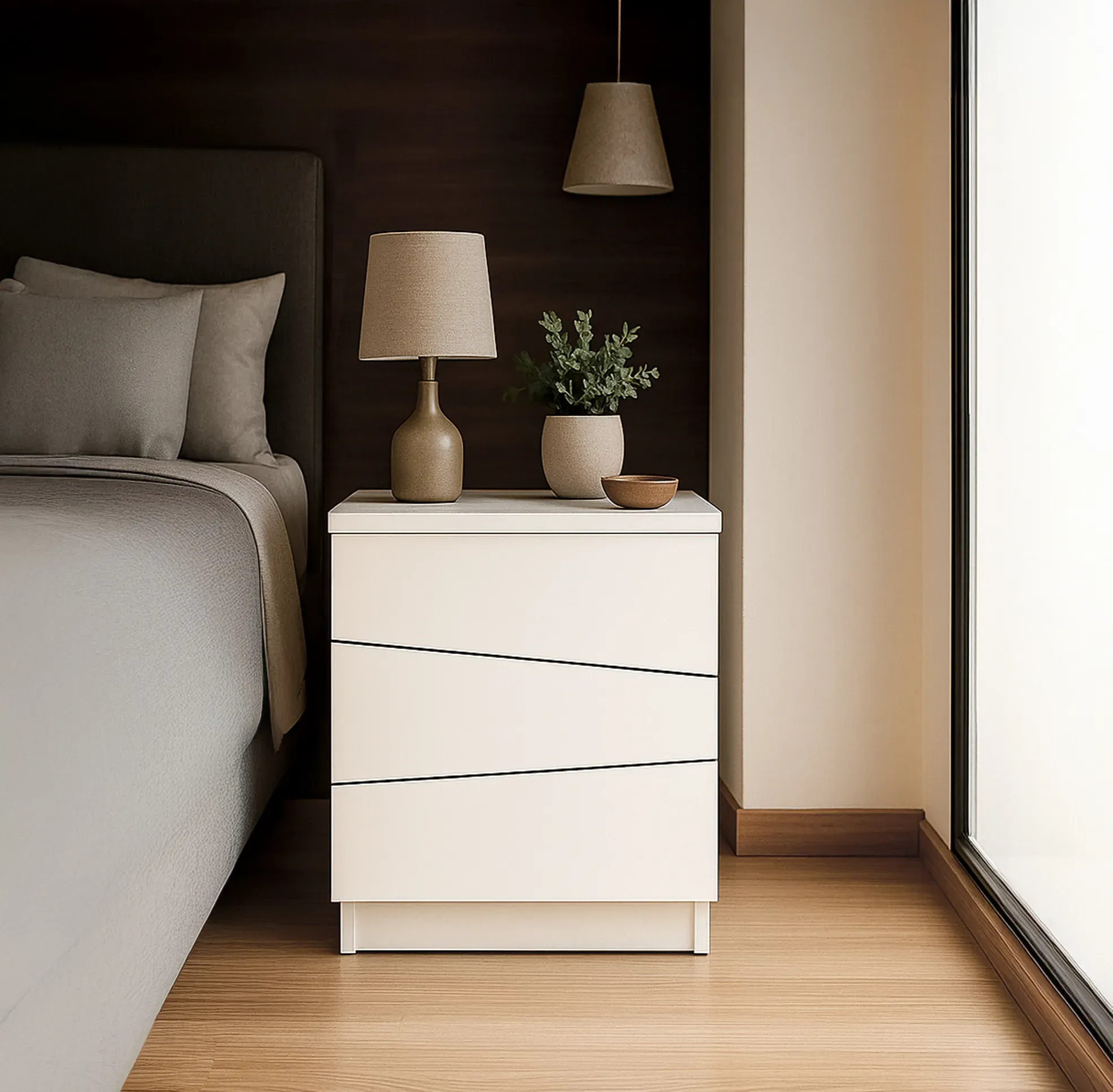 Optimiza tu espacio con la mesa de noche ÉTER, confeccionada con detalles de alta calidad para un diseño funcional y elegante. Este mueble único combina practicidad con estilo distintivo. Sus tres compartimentos ofrecen espacio práctico y moderno, adaptándose perfectamente a tus necesidades nocturna...